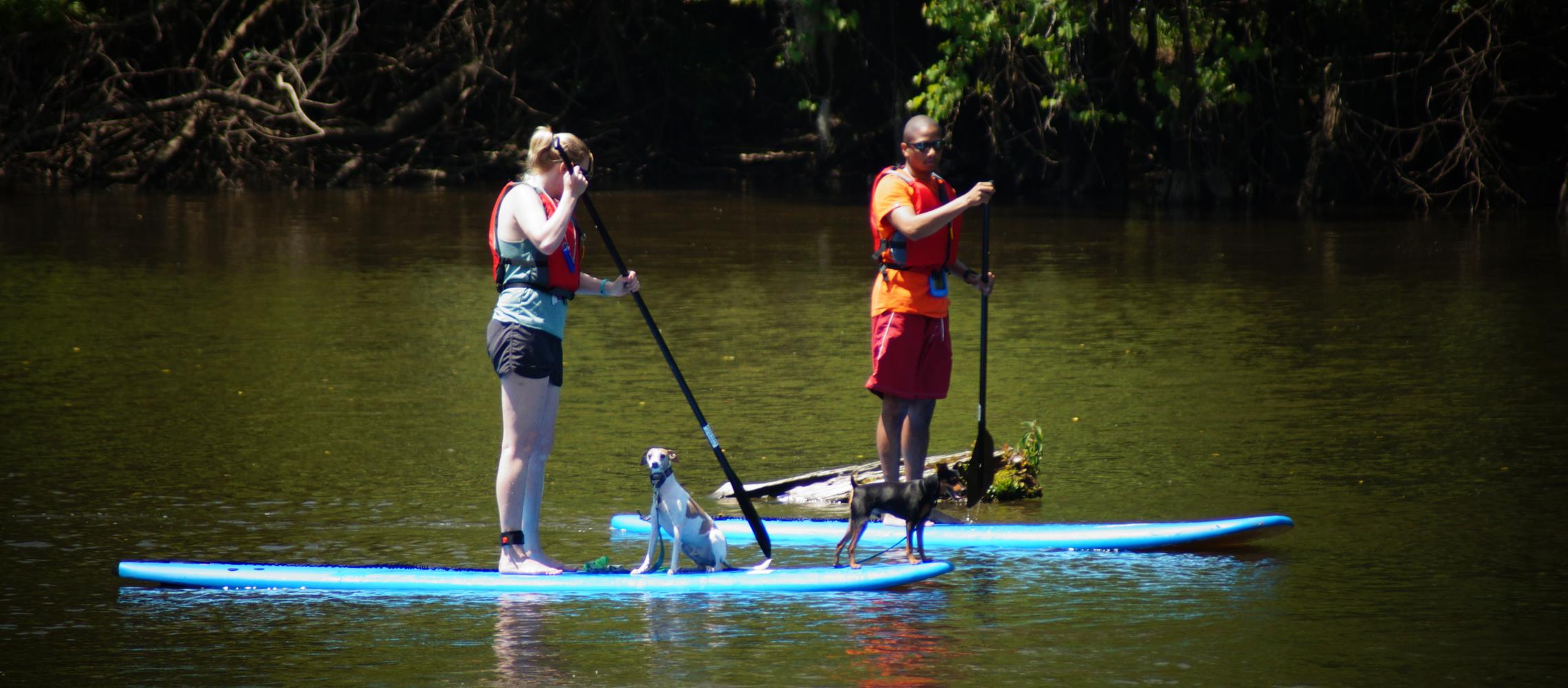 Knee Deep Adventures offers kayak, SUP, and canoe rentals, and guided trips in Greenville, NC. Dogs are welcome to paddle, and life jackets and foam cushions for kayaks and canoes are available. Stop by the shop with Fido for some complimentary doggie treats.