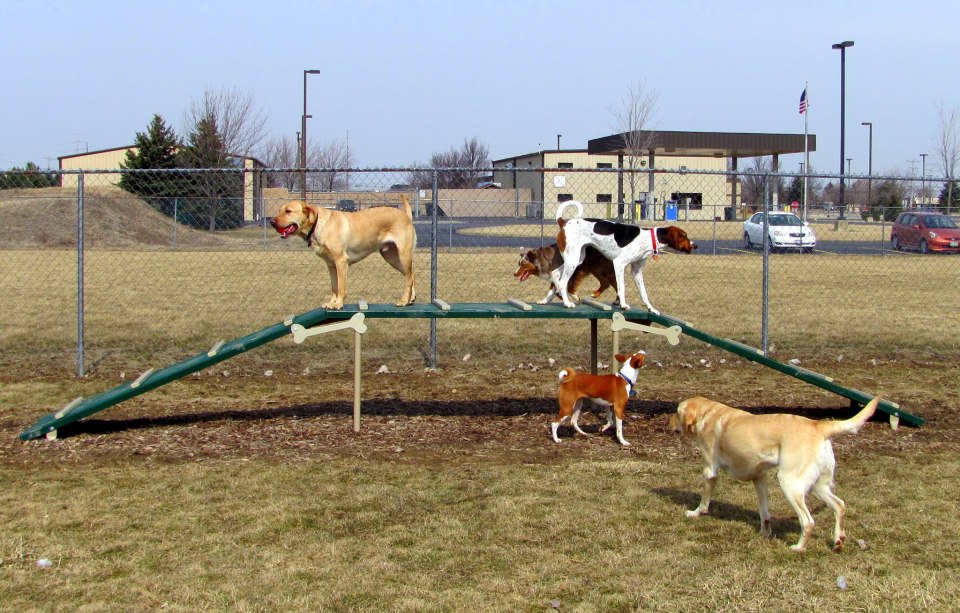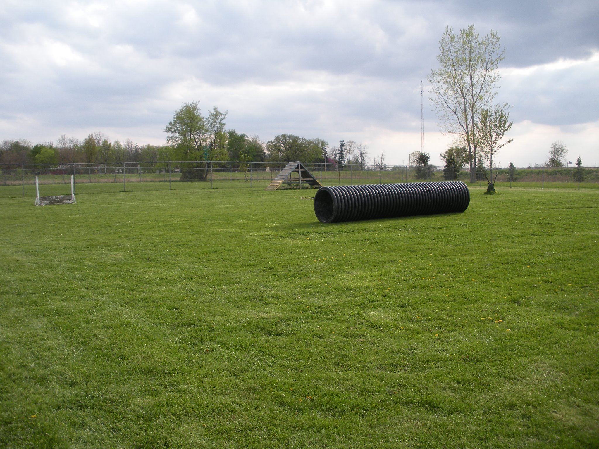 The dog park is an excellent place to exercise your dog and is an opportunity to meet new people. The park is comprised of three fenced enclosures where members and their dogs can play ball, frisbee, or enjoy our complete agility course. Each fenced enclosure is roughly 110 feet by 150 feet. The three fenced enclosures combined total approximately 1.12 acres. The dog park is available to members only, membership is simple and inexpensive.