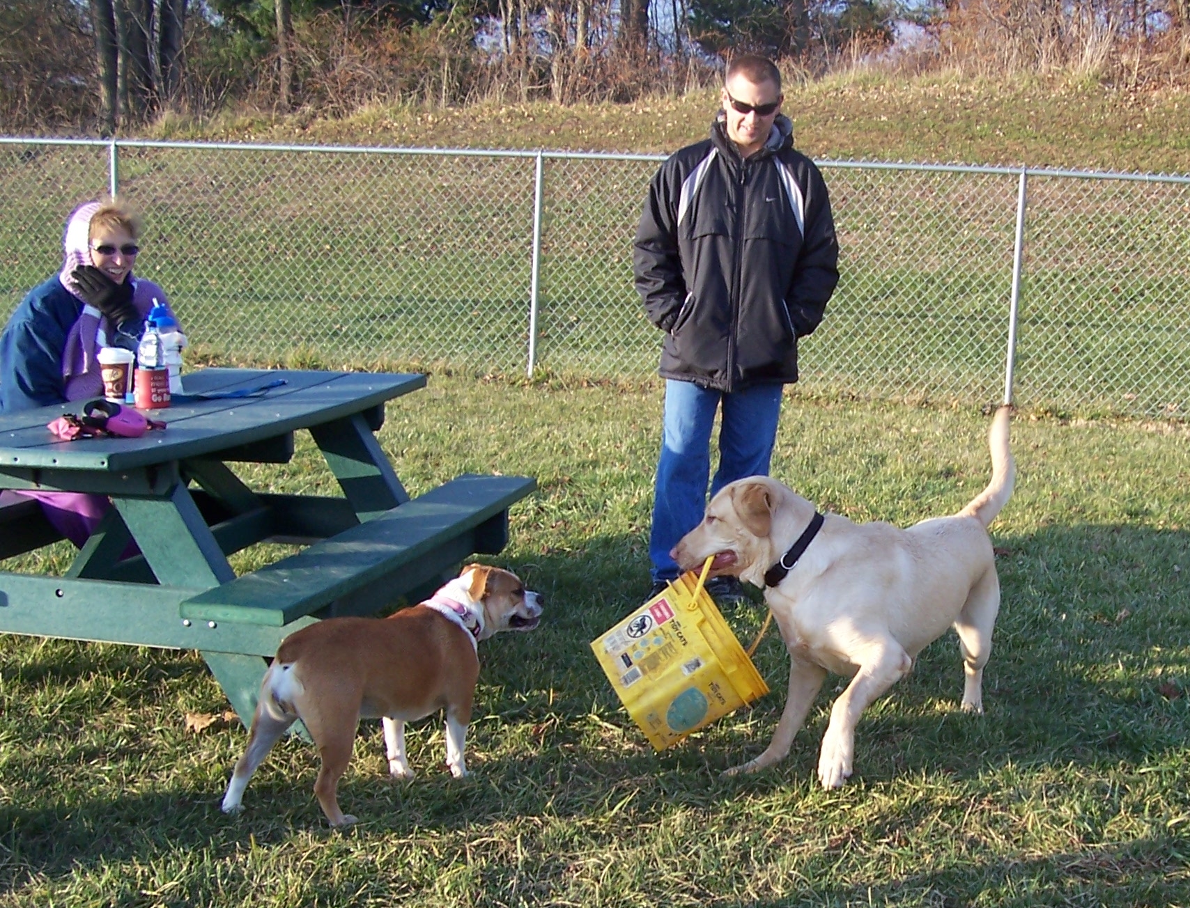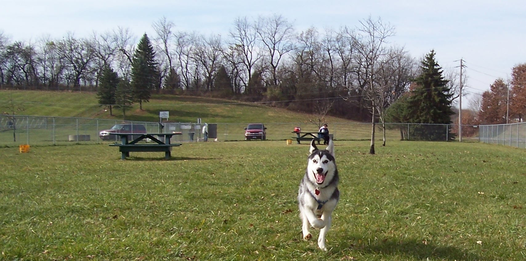 Pets love to play off-leash at this fenced dog park with separate small dog area, benches, and water fountains.