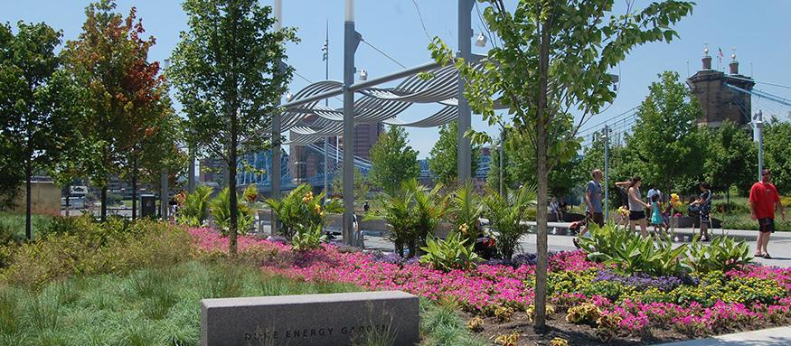 Leashed dogs are welcome to join their humans at Smale Riverfront Park. Park features include trails, a labyrinth, gardens, fountains, a carousel, an esplanade, benches, swings, and more. Dogs must be leashed at all times, and you must clean up after your pets.