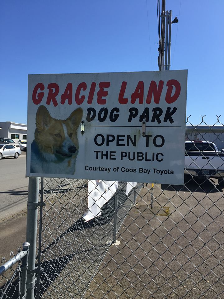 Bring your dog to this dog park at Coos Bay Toyota built for the car dealership owner's dog, Gracie. The park is open to the public and a great place for dogs to socialize and play off-leash.