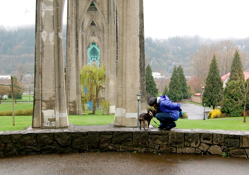 Cathedral Park is a pet-friendly park featuring a half-acre off-leash area for dogs located underneath the St. John's bridge and adjacent to the Willamette River. Water is available, but pet owners should bring their own poop bags.