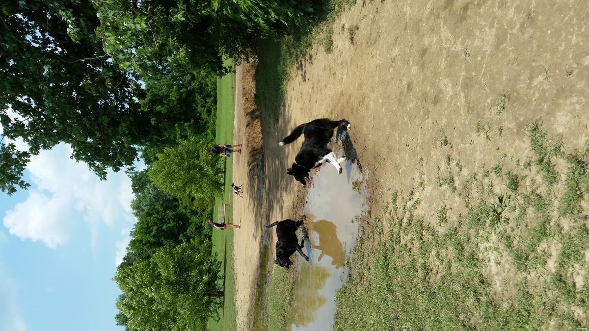 This large, fenced public park has a creek running through the property, which a lot of dogs really enjoy. There is also a separate playground for children and a beach volleyball court.