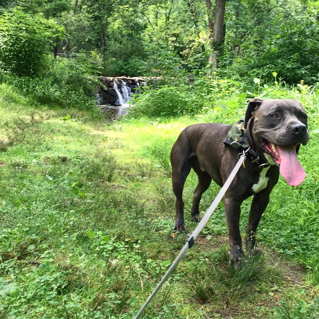 Dogs are welcome on-leash in this historic park, which includes a 1704 water-powered mill, lovely wooded trails, and other historic sights.