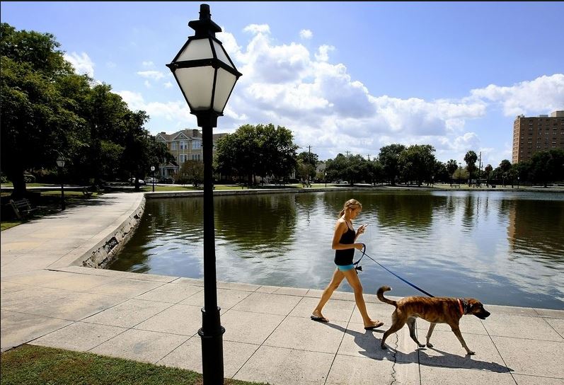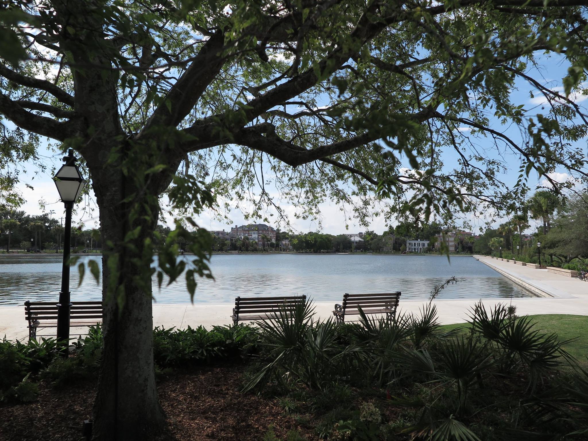 This historic neighborhood park is in the peninsula of Charleston. Dogs are often seen on leashes.