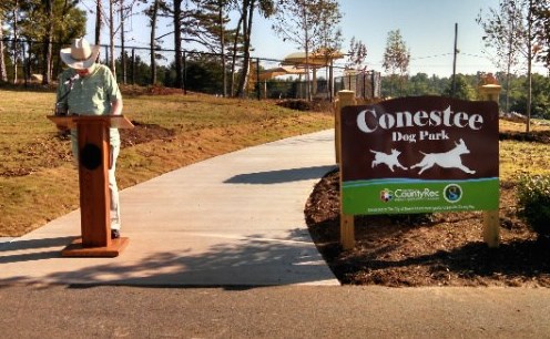 Greenville's newest dog park features fully-fenced play areas, with seperate sections for large and small dogs. Park features include benches, water station, and dog play features.