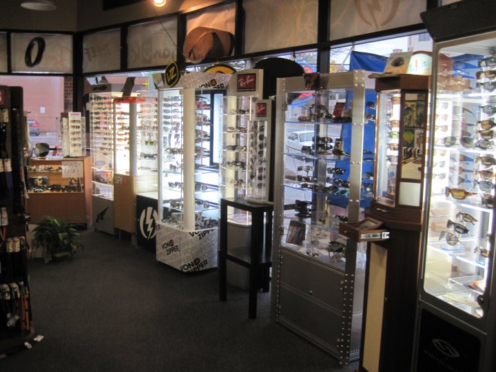 Palmetto Shades of Greenville is dog friendly. The store sells sunglasses, Yeti products, t-shirts, and sandals.