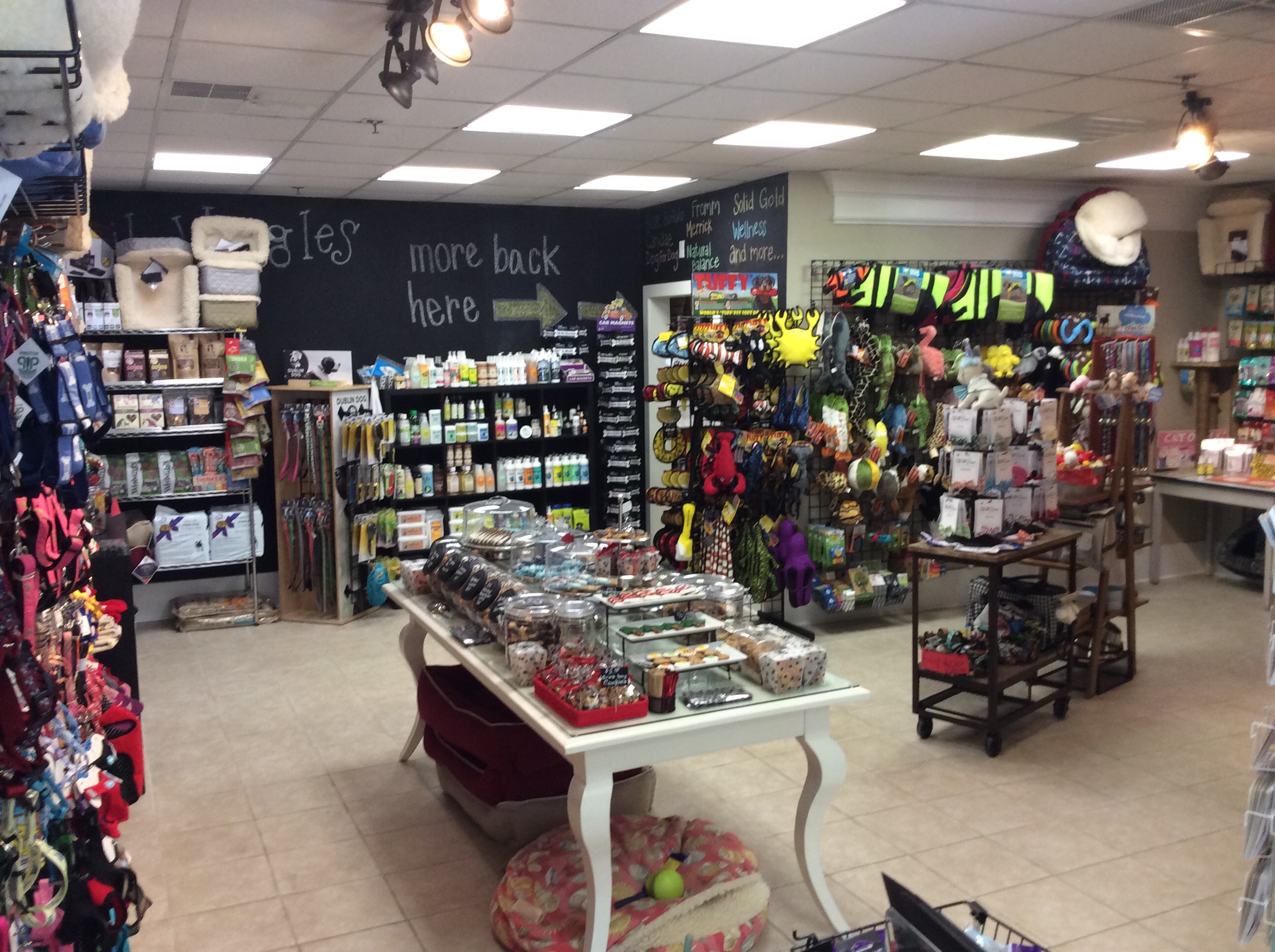 Tail Wiggles is family owned and operated pet supply shop located in the Village at Wexford. We carry food, treats, toys, beds, collars, and more for both cats & dogs. Our specialty item is our barkery selection of baked cookies in a wide variety of flavors, shapes, and sizes for even the pickiest pup. Friendly dogs and brave cats are always welcome in the shop.
