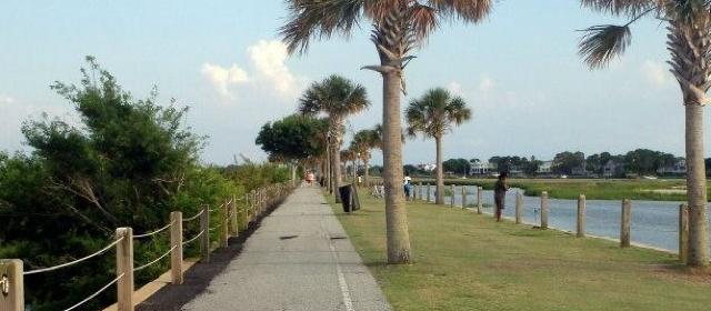 This is the old railroad causeway that used to connect Mt. Pleasant to Sullivan's island. The city planted grass and palm trees and it is a beautiful place to walk your dog and watch the sunset. There are pet waste stations and a water fountain for people and for dogs. A must do when in charleston. Parking can be tight.