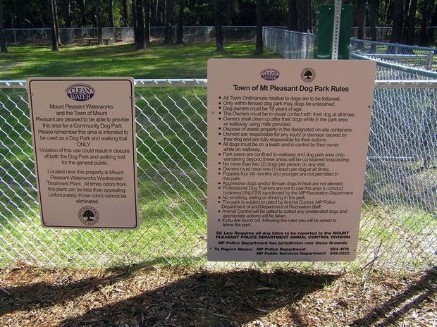 A little hard to find, this park is situated behind the Mt P Waterworks complex and Whiteside Elementary School. There are brown signs that will guide you to the dog park but they are easy to miss! Park and walk down the forest trail and you've made it. Continuing along the short trail will bring you to the salt marsh. Water and bags for dogs at the park.