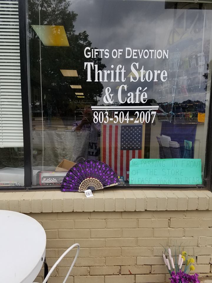 We sell new items, gently used items, vintage/antiques, collectibles and items for shabby chic artisans. We work closely with local York County, S.C. ministries and local communities, to give to those in need with our volunteer service GIFTS OF DEVOTION (i.e. displacements for families, pets, other businesses, homelessness, or transitional situation).