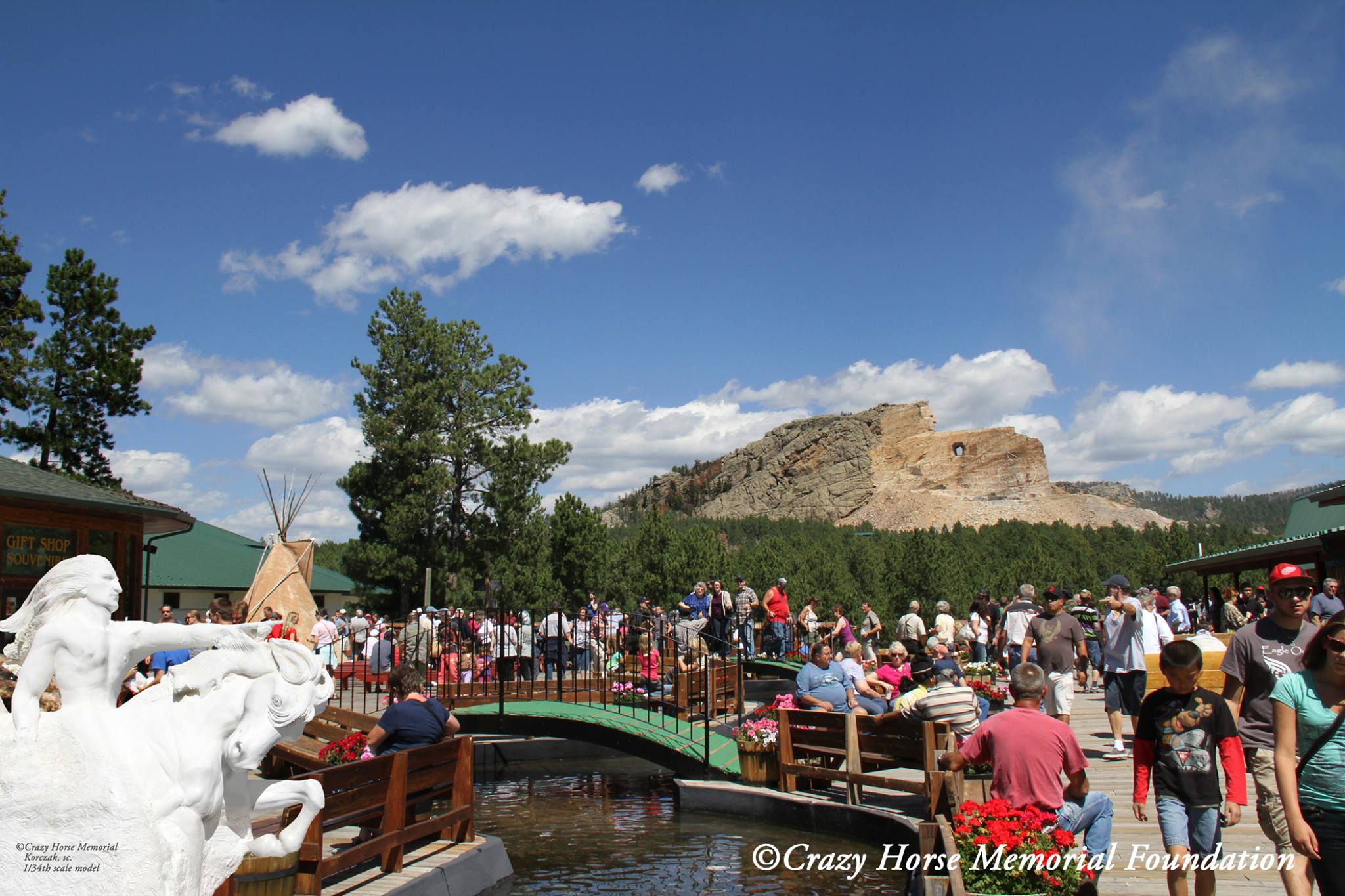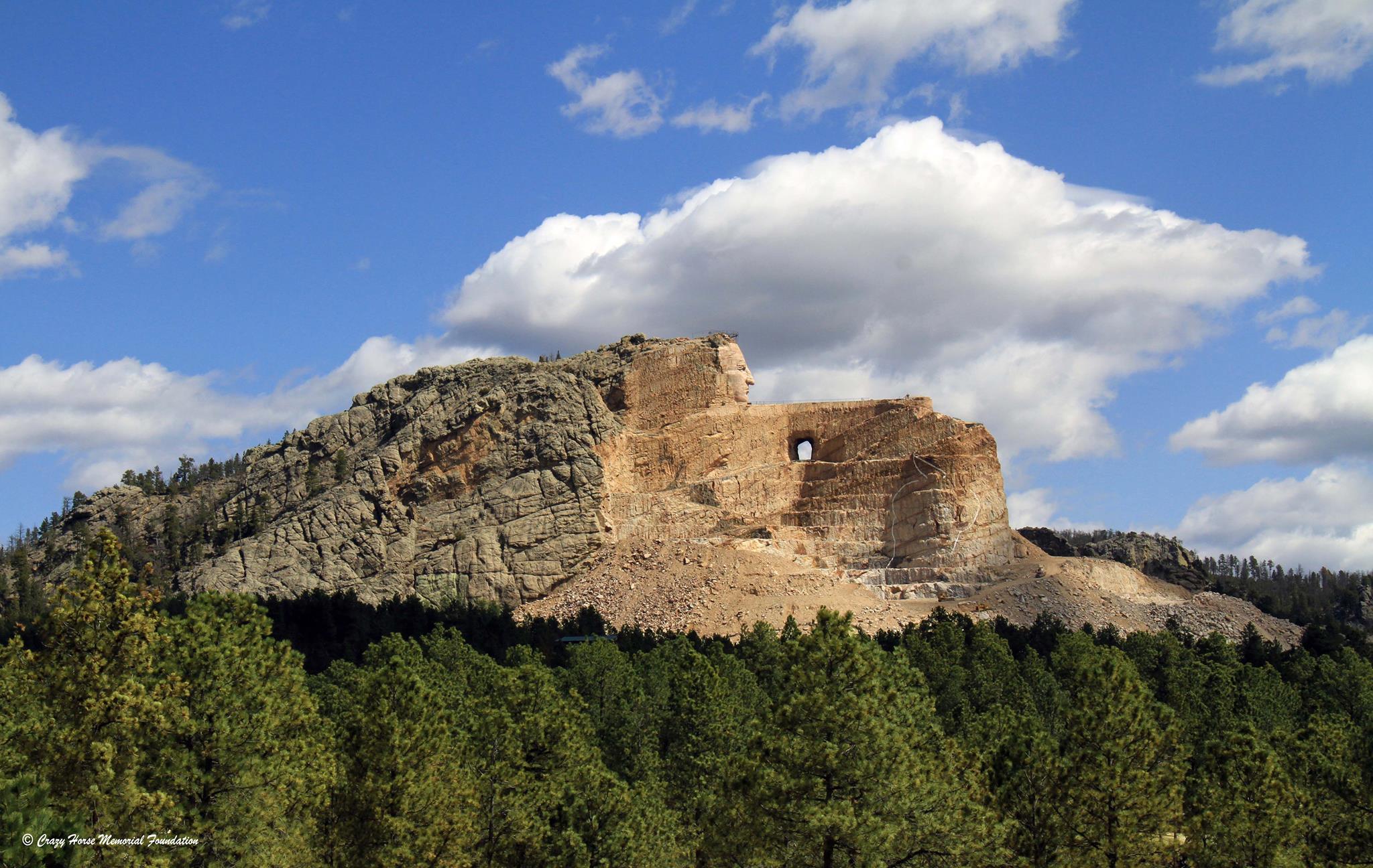 Leashed pets are allowed to share the Crazy Horse Memorial experience with their human companions. Pets are welcome at the outdoor viewing veranda and outdoor exhibits. Pets small enough to be comfortably carried or contained are allowed in any of the buildings except for the restaurant or the snack bar. Pets are not permitted on the bus rides to the bottom of the mountain.