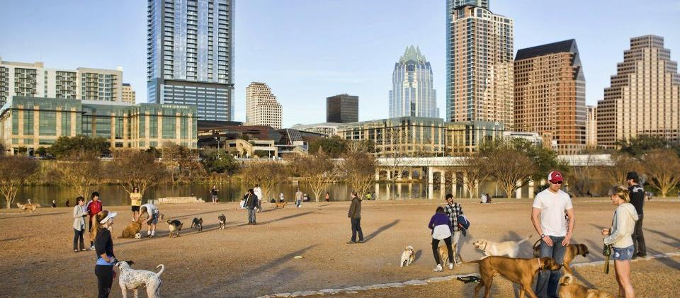 Leashed dogs welcome here on 10 miles of hiking trails along the bank of the Colorado River. Great views of the lake and Austin skyline!