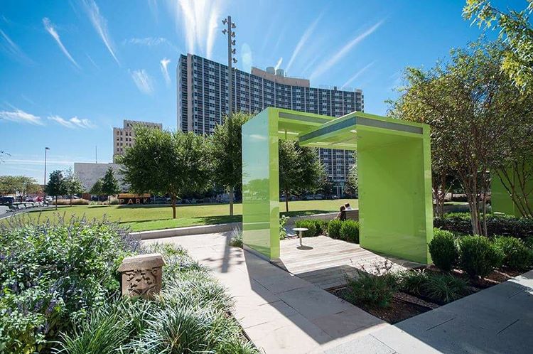 Downtown Dallas pooches finally have a dog park of their own here, where they can run and play off-leash. The park is securely-fenced.