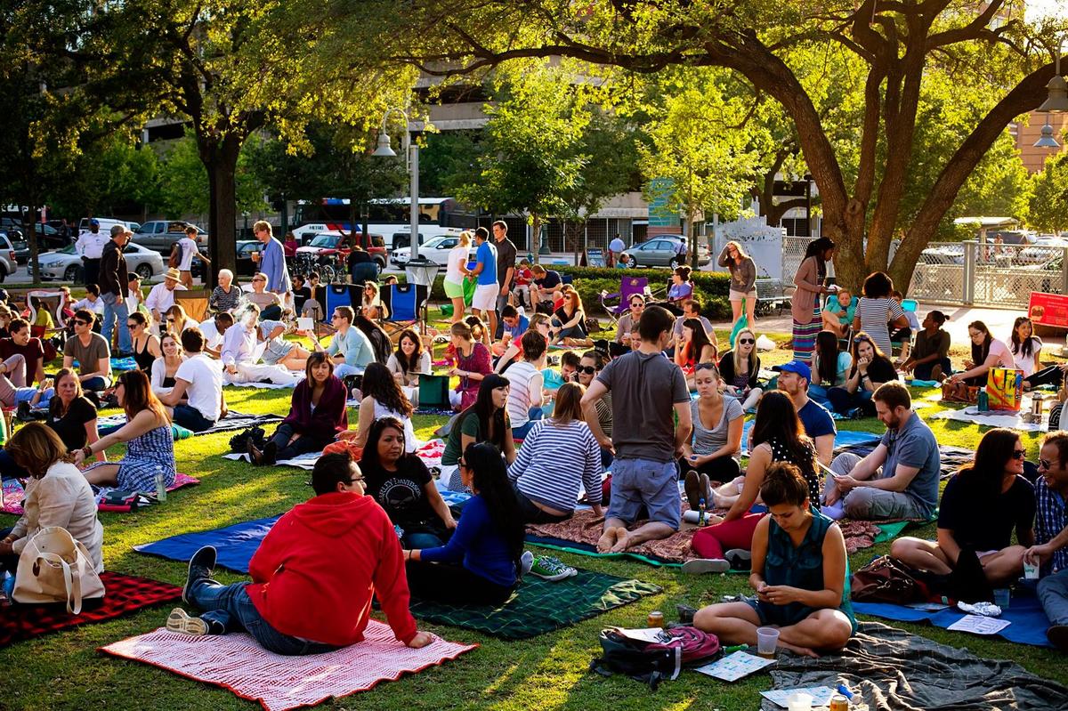 Market Square Park is at long last being reclaimed as the bustling center of downtown Houston’s Historic District. The new park is a true neighborhood space, anchored by a central lawn where more than one City Hall once stood. A crescent-shaped dog run on the park’s west side gives the canine contingent an attractive and active place to let loose. A beautifully lit fence and walkway arc through the park provides insight to the history of the area.