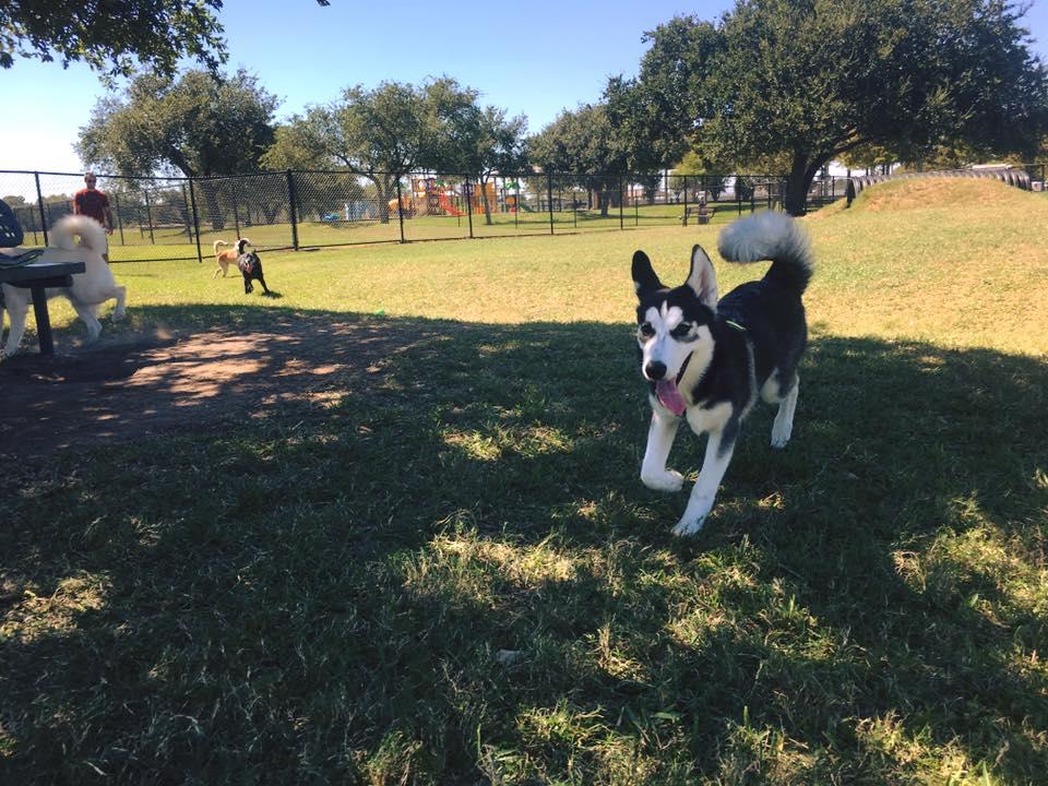 Small fenced dog park, but nice area for the dogs to play. Separate fenced sections for large and small dogs.