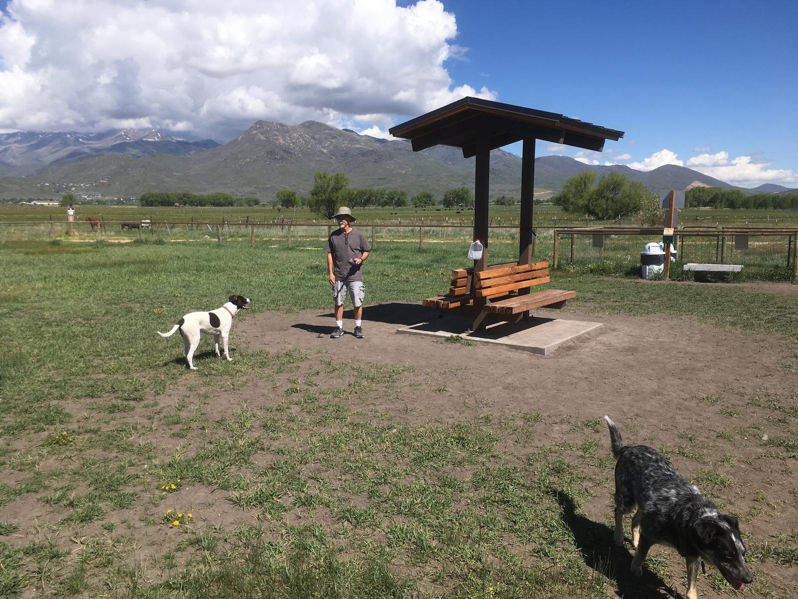 Bring Fido to Heber City Dog Park to play off-leash! The Park is grassy, fully fenced, has a small bench with shade, and provides clean-up bags and a trash can. It does not feature separate areas for small and large dogs. The parking lot is gravel and a good distance from the fenced area, so regulars warn that persons with disabilities may have trouble accessing the Park. Dog owners should clean up after their pet and keep them leashed until inside the fenced area.