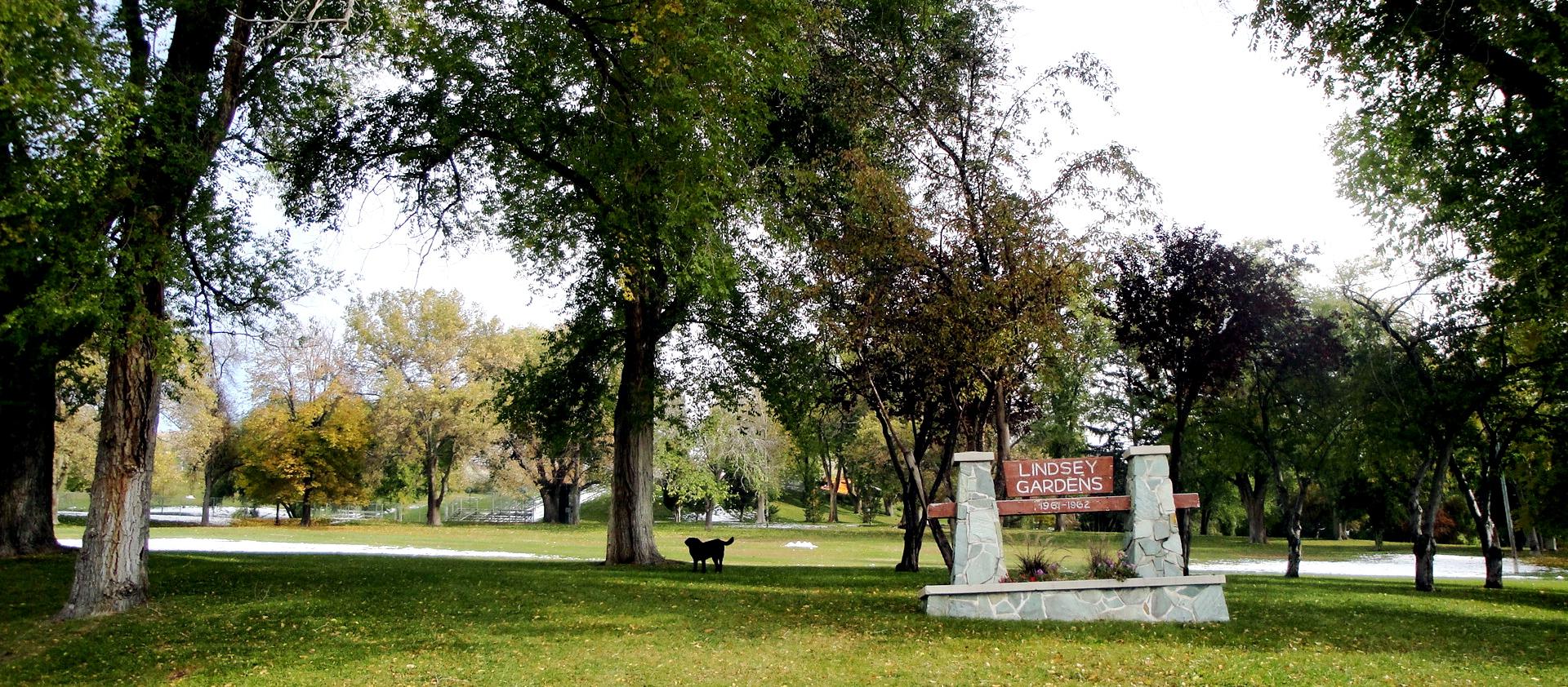 Pets are welcome to run and play off-leash in this designated area of Lindsey Gardens park. Be careful as the area is not fenced, and be sure to bring water.