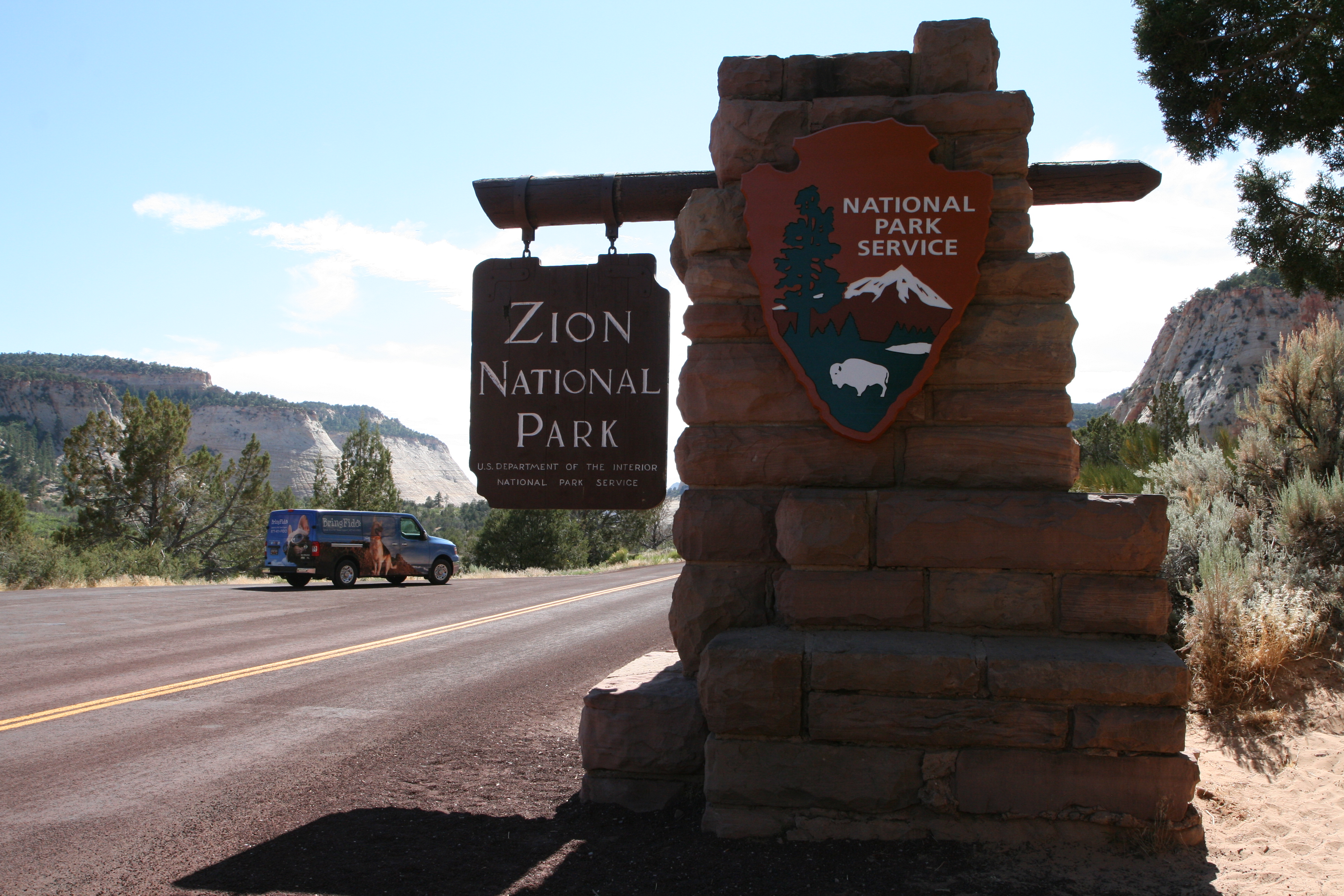 Take in the beauty of Zion National Park from the comfort of your car on the Zion-Mount Carmel Highway. You and Fido can enjoy the stunning landscapes and wildlife viewing on the road before stretching your legs on the Pa'rus Trail.