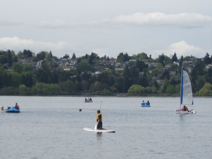 Dogs are welcome on stand-up paddleboard / SUP and kayak renatls. Green Lake Boat Rentals is open daily (weather permitting) 9am - 6pm.