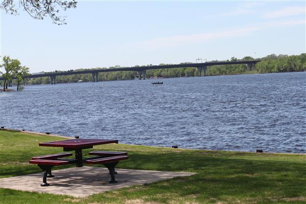It's a great waterside park with walking trails, grassy areas, and a nice concrete pier to walk on with Fido. Dogs need to be leashed, but it's a great place to hang out and enjoy yourself.