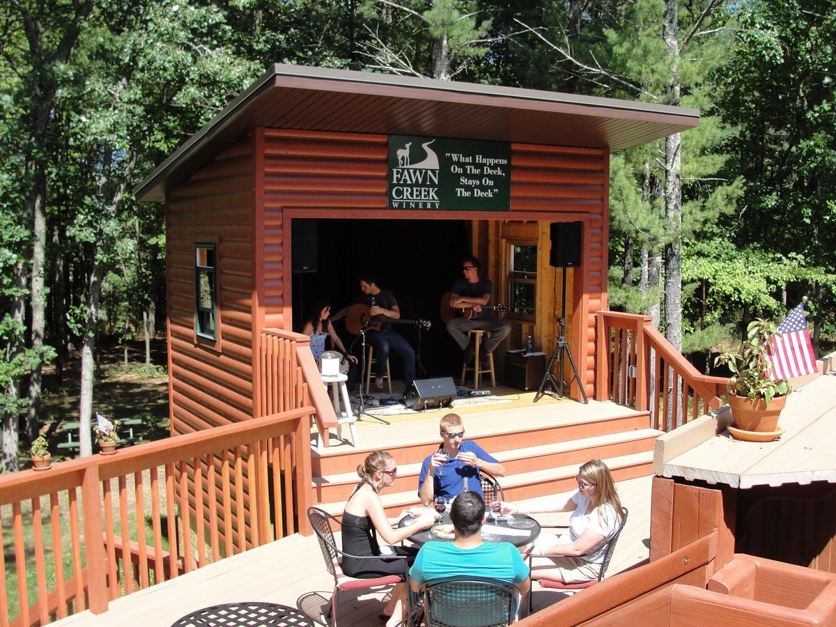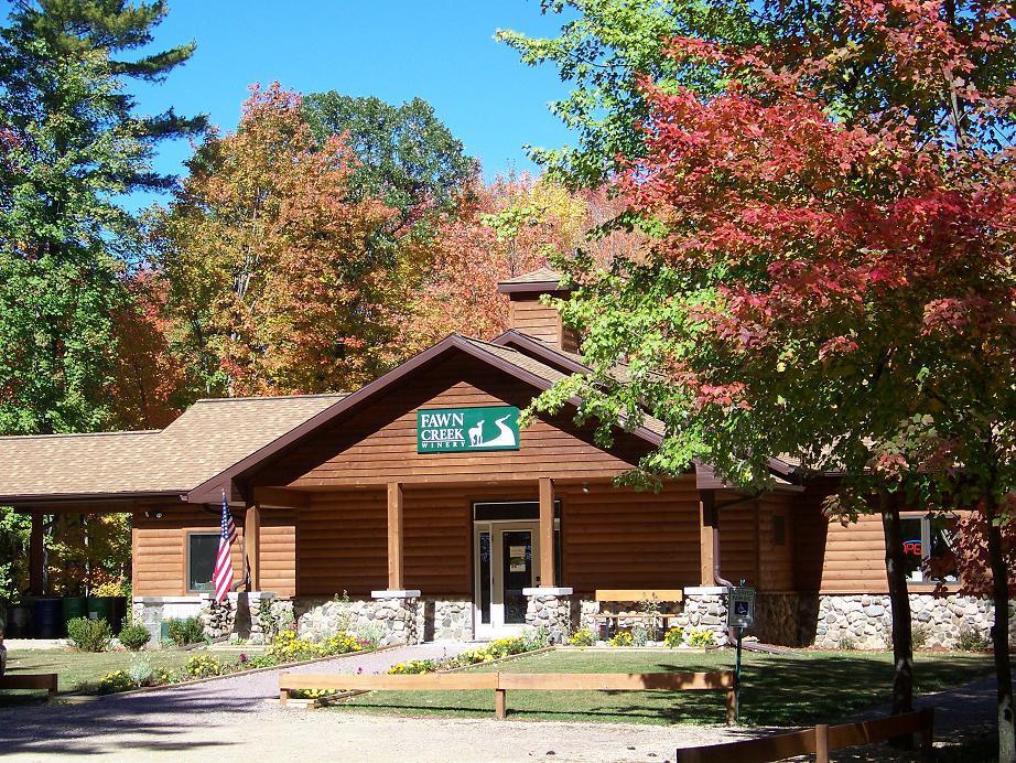 Fawn Creek allows patrons to sample from a wide selection of red, white, fruit flavored, and seasonal wines. Relax with a glass of your favorite vino at a deck table overlooking the 7-acre vineyard. Well-behaved dogs are welcome on the winery grounds, but not in the tasting room or patio.